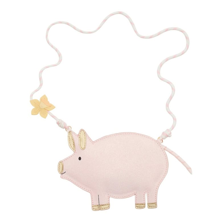 Conheça a adorável bolsinha de porquinho da Penélope, Mimi&Lula, cheia de charme primaveril! Lindamente brilhante e com um rabinho de fita de gorgorão rosa encaracolada, ela é perfeita para os pequenos fãs da fazenda!