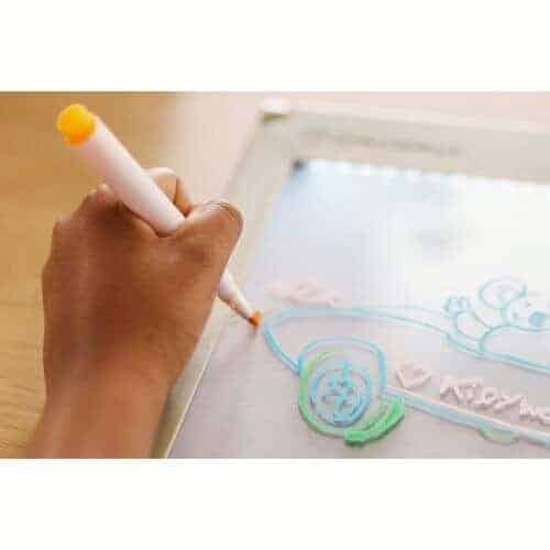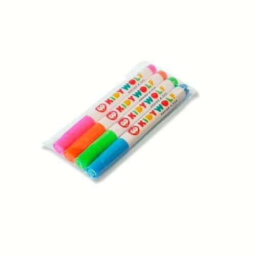 Kit de marcadores apagáveis? Em cores fluorescentes para desenhar no quadro KIDYDRAW-PRO.Apresentam um efeito neon que vai realçar as cores dos desenhos dos seus filhos durante a noite.