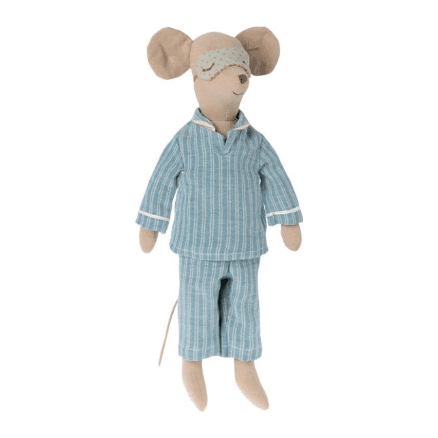 Um ratinho de pijama pronto para ouvir histórias de encantar.