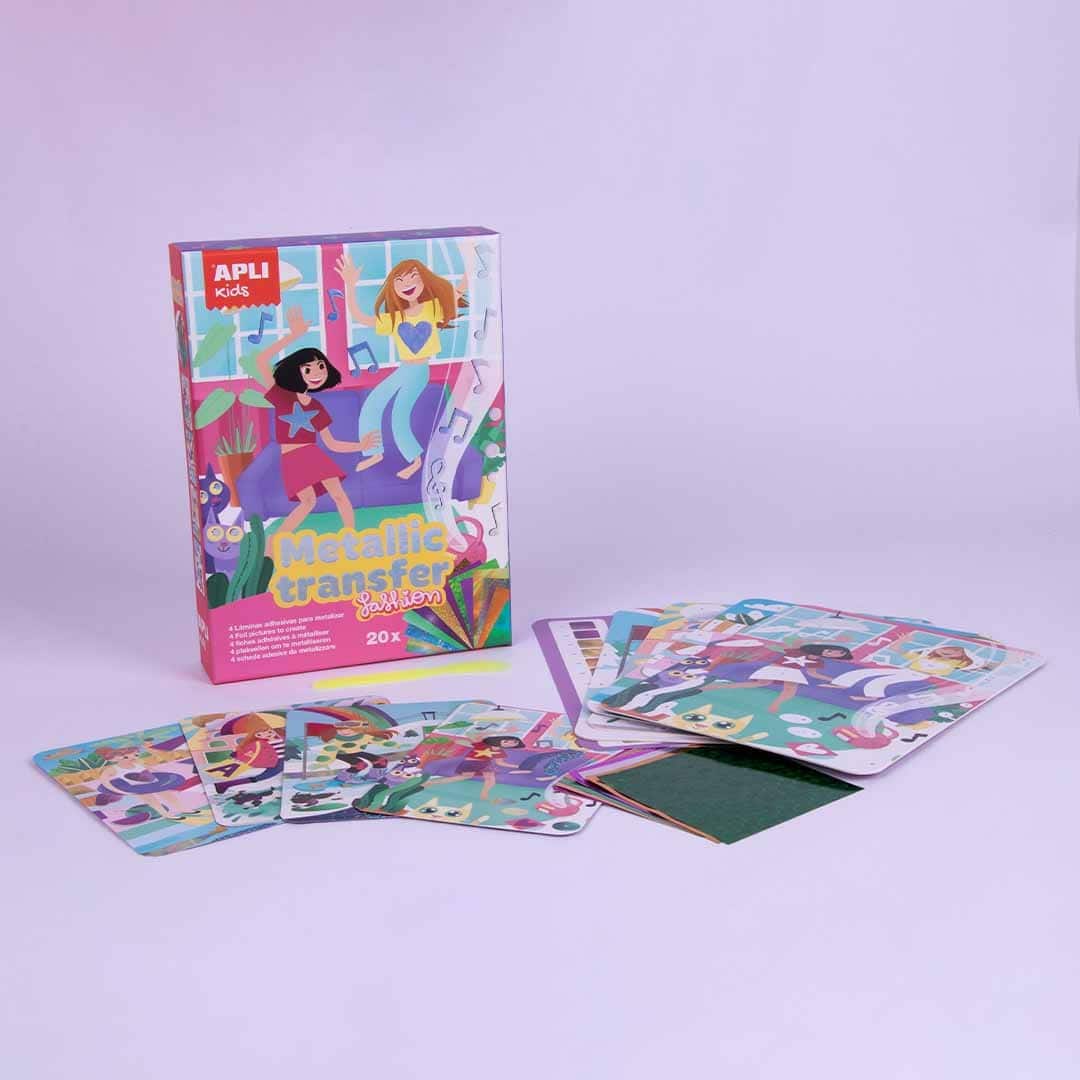 Um jogo com películas adesivas para criar desenhos surpreendentes com papel metalizado transferível.