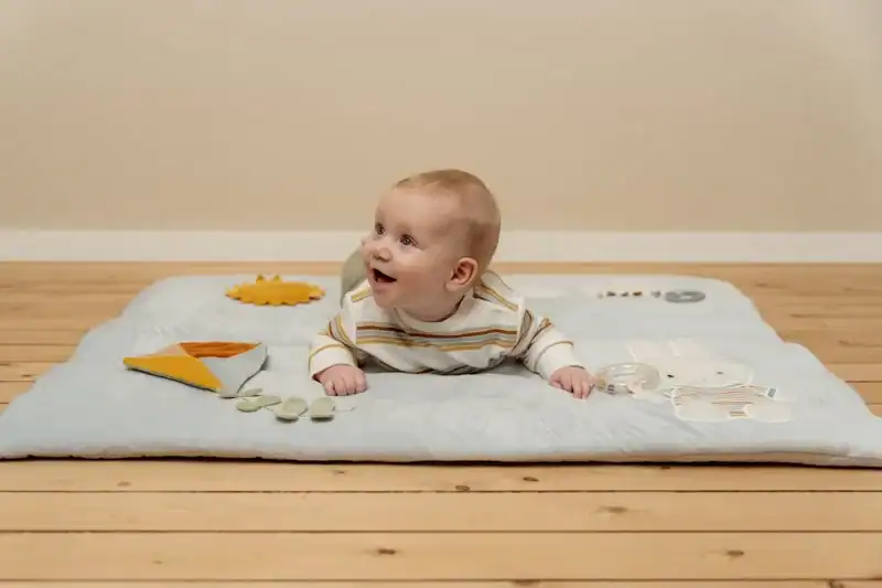 Este tapete acolchoado com miffy estimula os sentidos do seu filho com as diferentes texturas e atividades. A pipa estala, um espelhinho se esconde atrás do sol, as nuvens são feitas de um lindo tecido de pelúcia macio e há várias etiquetas para descobrir. Um anel de dentição também foi anexado ao tapete do cercadinho. E não se esqueça de Miffy com sua roupa listrada e anel de chocalho com miçangas!