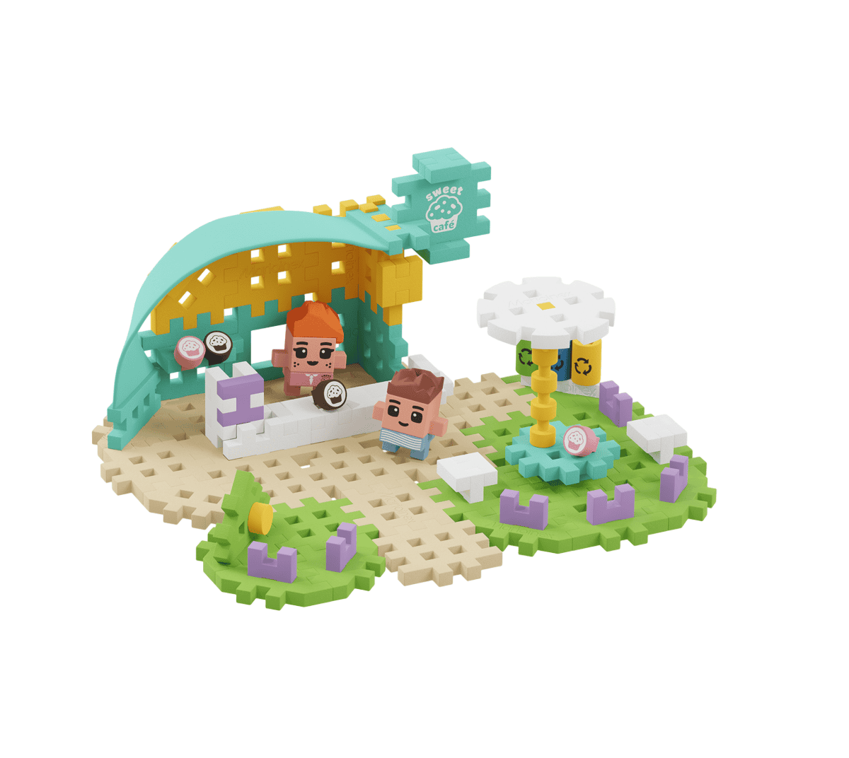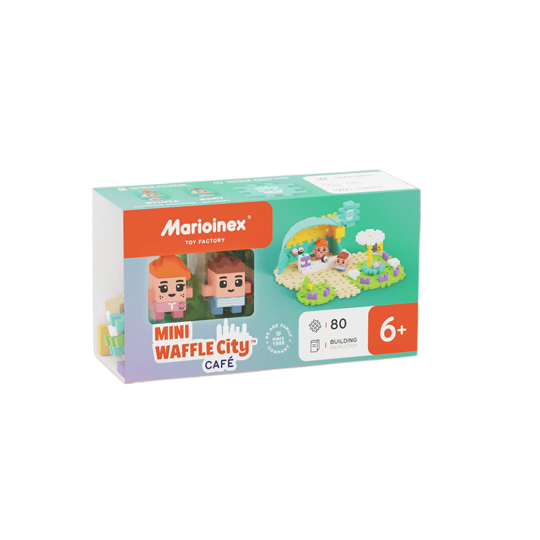 O Conjunto Café inclui 80 peças e duas personagens, aos quais pode atribuir papéis! Torne-se um mestre confeiteiro como Sylvia e sirva aos clientes do café os melhores doces da cidade! Ou assuma o papel de Bart, aproveitando uma pausa em seu lugar favorito. Combine o conjunto com outros da série Waffle City e expanda a cidade com um café pitoresco. Monte o conjunto de acordo com as instruções ou use sua imaginação e dê seu próprio toque!