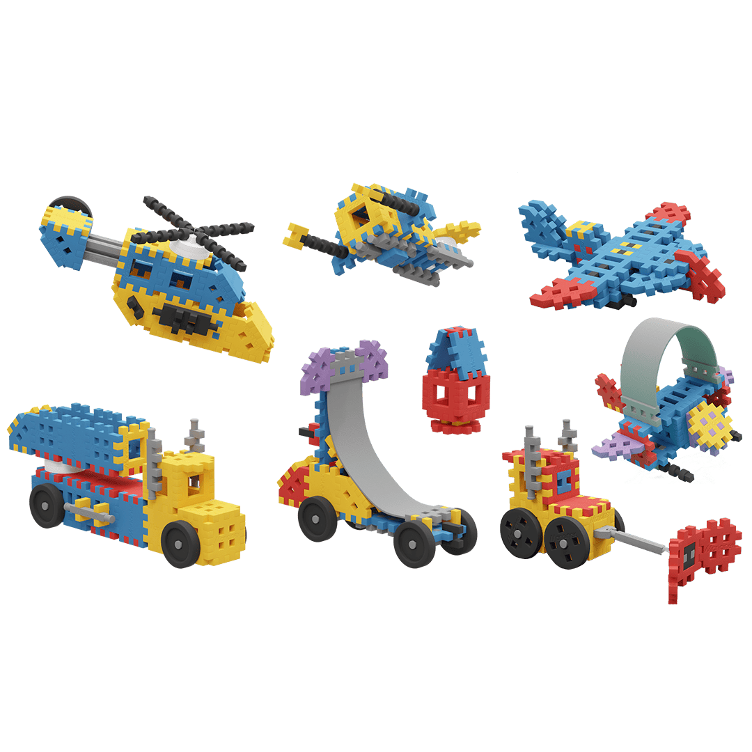 A variedade de formas de elementos com aplicações especiais e a sua grande quantidade permitem a criação de formas tridimensionais de veículos, edifícios e personagens de acordo com as instruções incluídas no conjunto. O seu filho, com entusiasmo e a habilidade de um verdadeiro especialista, construirá uma casa, um moinho de vento, um avião, um comboio ou um helicóptero. E, se quiser, pode criar qualquer forma usando apenas a imaginação! Desenvolve a imaginação das crianças, as habilidades manuais e ensina o raciocínio lógico.