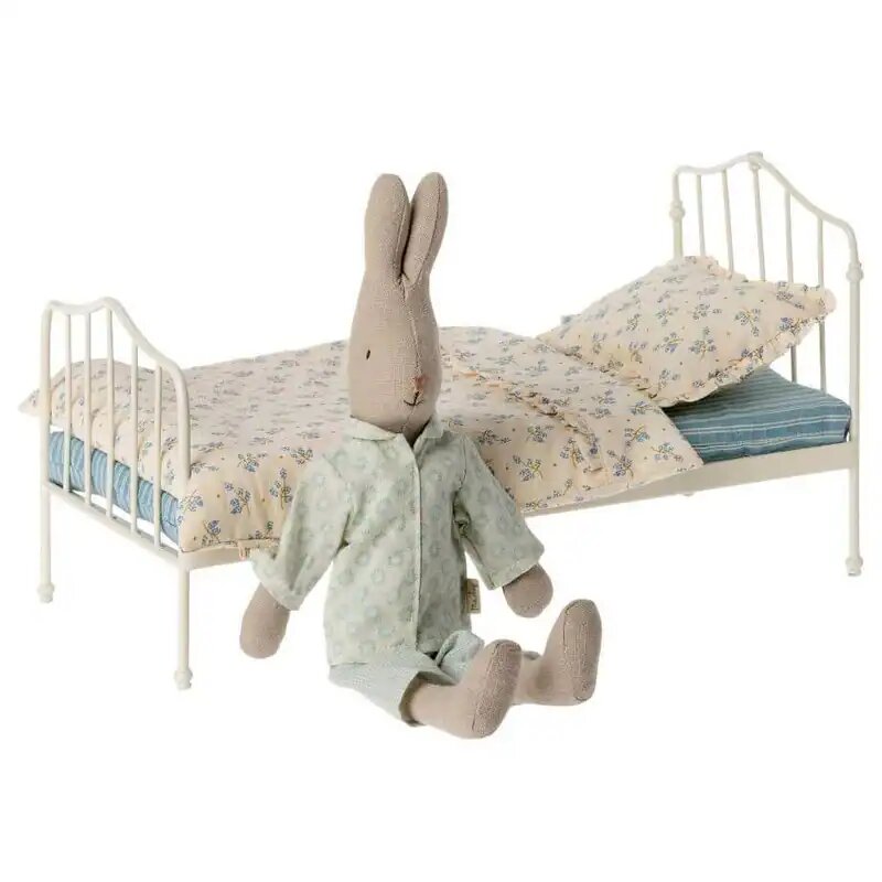 Cama de metal vintage que inclui lençol, manta e almofada.