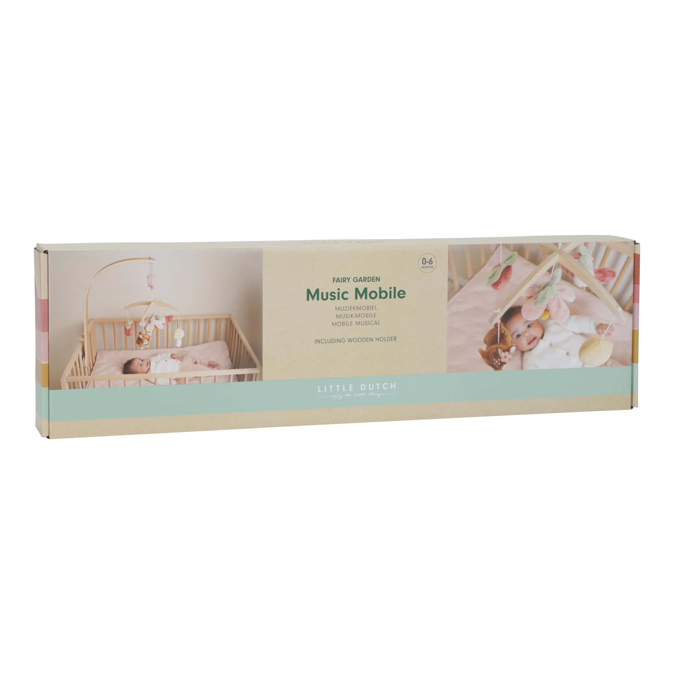 O mobile apresenta cinco brinquedos da coleção Jardim das Fadas: um cervo, um morango, uma flor, um cogumelo e um passarinho. Os bebés adoram observar o movimento desses brinquedos, o que estimula seu desenvolvimento visual.
