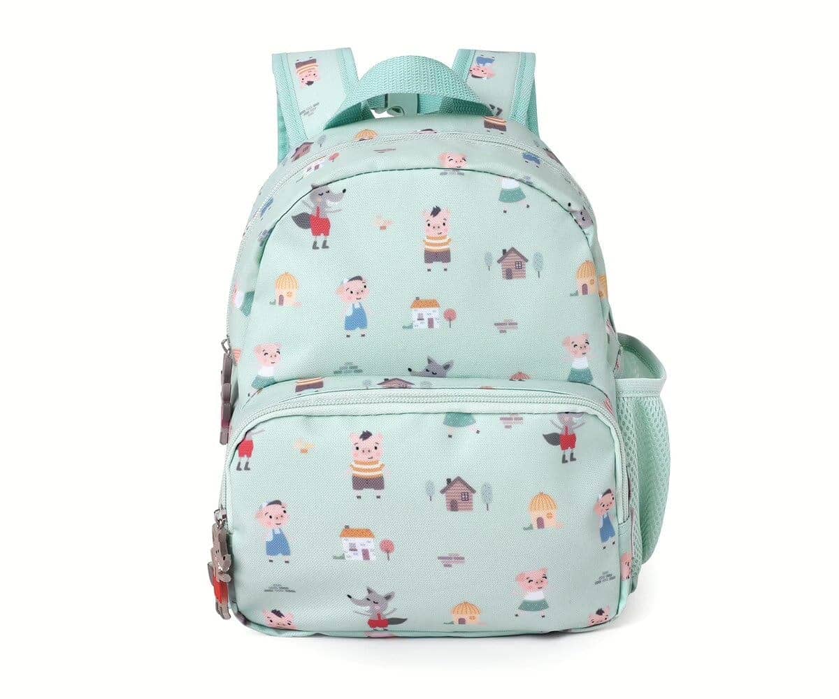 Descubra a mochila pequena Three Little Pigs, perfeita para crianças! Confortável e cheia de estilo, ideal para a escola ou passeios. Pronta para aventuras!