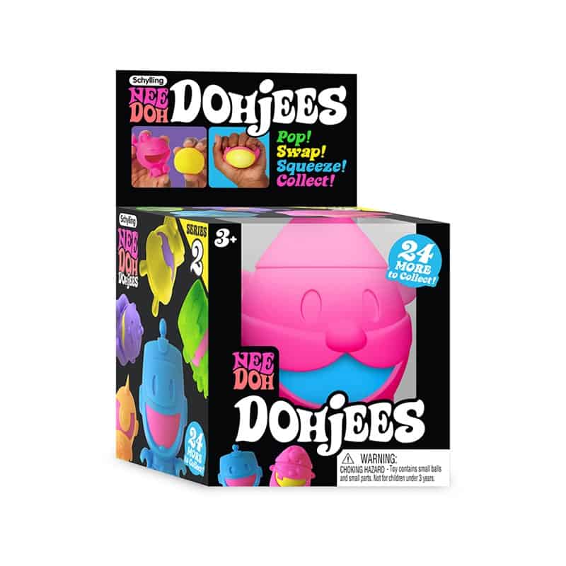 Os NeeDoh Dohjees são pequenas criaturas com uma textura irresistivelmente macia e intercambiável. Cada Dohjee vem com um Teenie NeeDoh dentro, pronto para ser apertado, puxado e amassado.
