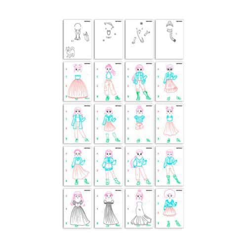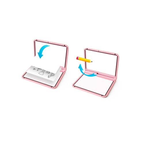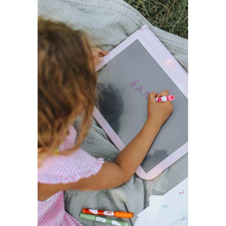 O seu filho pode reproduzir fielmente letras, números ou um desenho existente. O verso funciona como uma prancheta preta com efeito neon que realça as cores do desenho à noite. Com tampa magnética e pés de borracha, não há risco de movimentação da folha de desenho copiada.