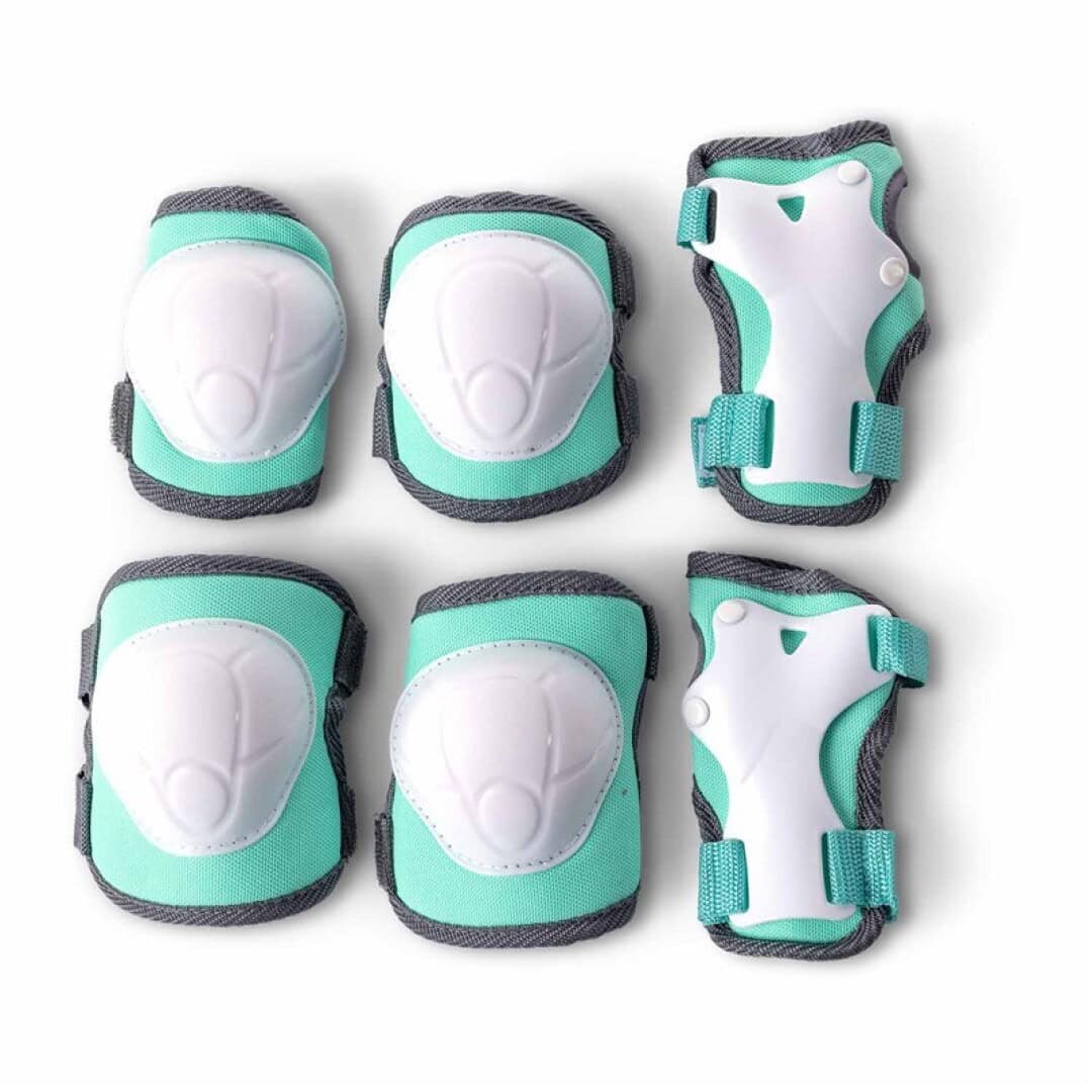 O kit de proteção inclui protetores para pulsos, cotovelos e mãos. Este kit garante máxima segurança. Em caso de queda, os protetores de mão protegerão perfeitamente as palmas das mãos.