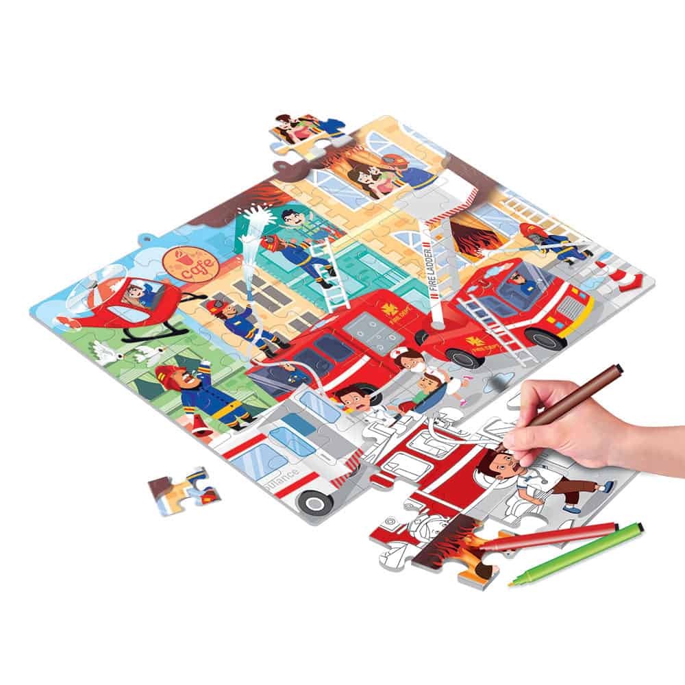 Puzzle 2 Faces | Colorir | 48 Peças | Bombeiros
