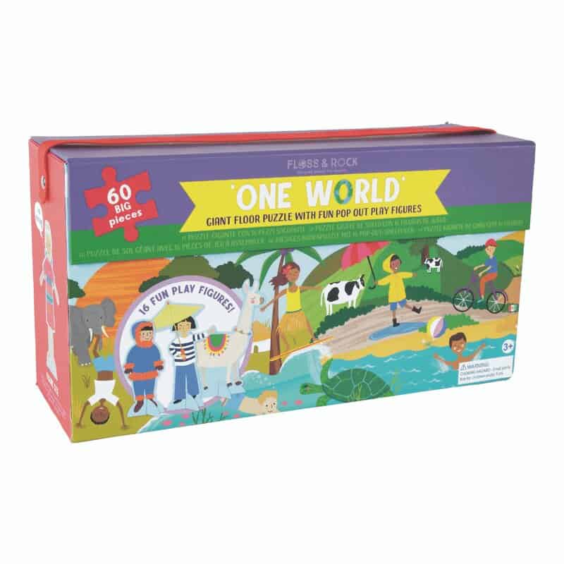 Este puzzle com 60 peças manterá as crianças ocupadas, proporcionando horas de concentração e brincadeiras imaginativas em nossa cena One World.