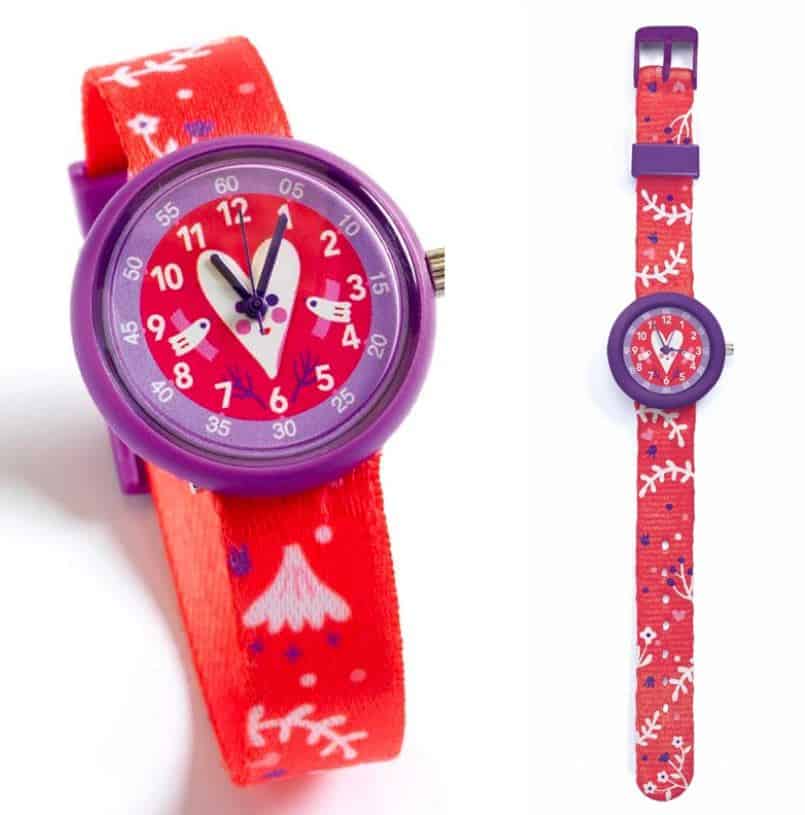 Um relógio de quartzo elegante, que ajuda as crianças a aprenderem a ver as horas.