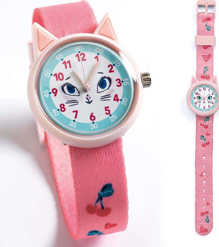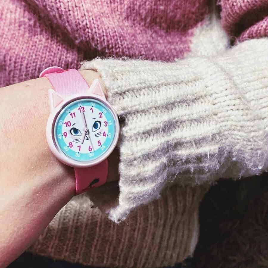 Um relógio de quartzo elegante, que ajuda as crianças a aprenderem a ver as horas.