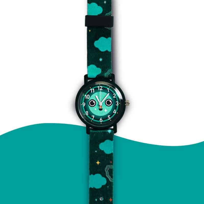 Um relógio de quartzo elegante, que ajuda as crianças a aprenderem a ver as horas.