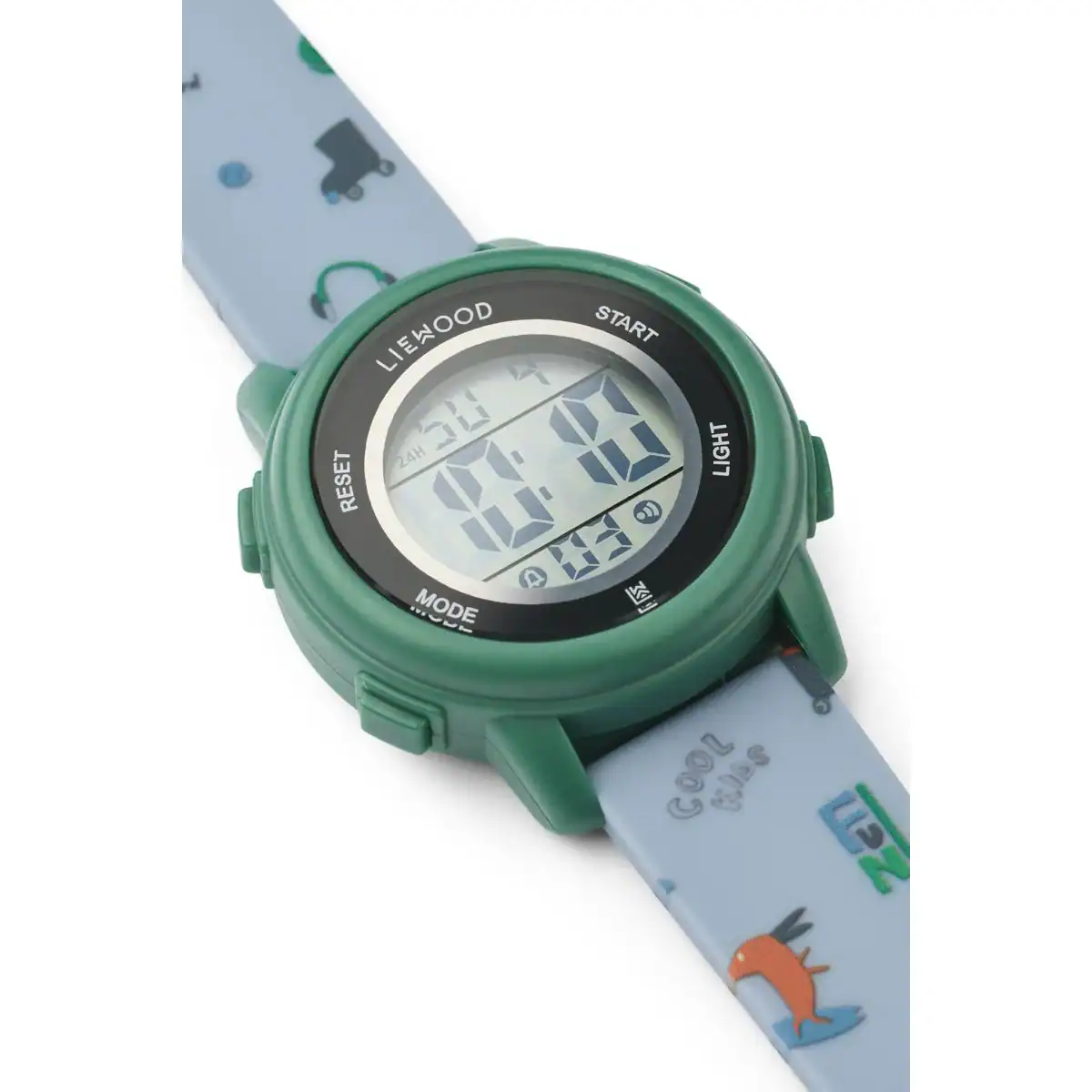 O vibrante relógio de pulso com um design divertido com padrões coloridos e uma pulseira de silicone resistente, perfeito para as aventuras do dia a dia. O visor digital de fácil leitura ajuda a criança a ver as horas com facilidade.