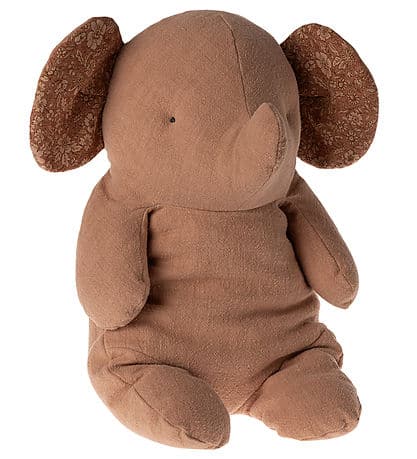 Lindo brinquedo Maileg em formato de elefante, na cor rosa-claro. As orelhas são rosa por dentro e têm estampa floral por toda parte. O brinquedo macio Maileg é macio e fácil de abraçar, e ele consegue sentar sozinho, pois é preenchido com pelotas de PE nas pernas.