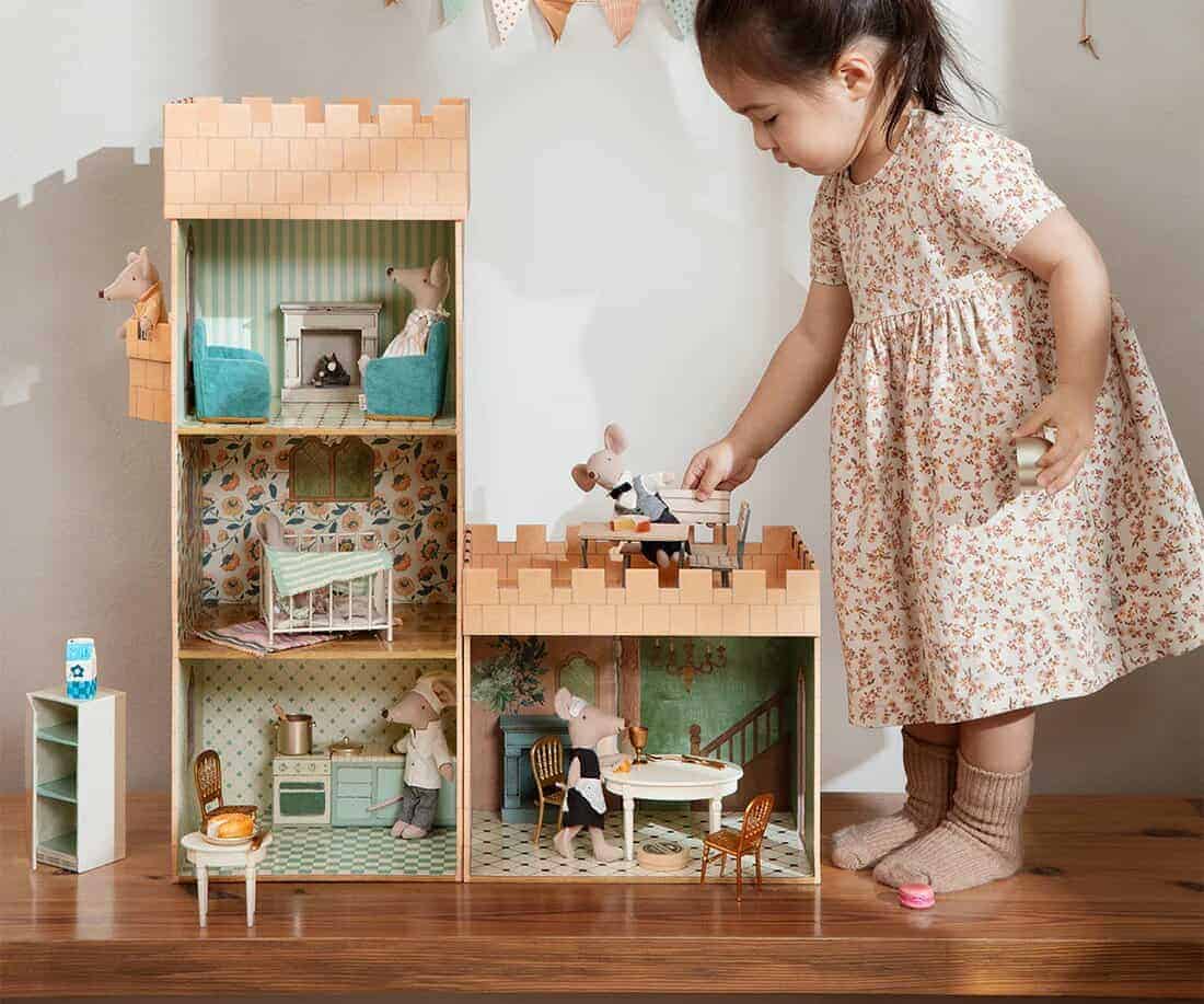 Esta mesa é perfeita para preparar um lanche, ou servir um chá. Desenhada para estar dentro do castelo dos ratinhos, pois combina com todos os outros acessórios da coleção.