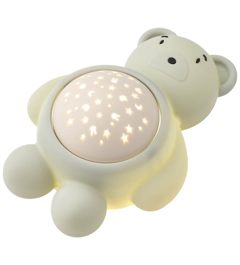 Este projector de luz tem estrelas e luas em sua barriga, o que cria uma atmosfera aconchegante e transforma o ambiente em um céu noturno. Além disso, possui um spa sonoro com 8 melodias, como: Batimentos Cardíacos, Ondas, Chuva e Floresta à Noite.