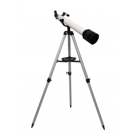 Tubo totalmente metálico. Abertura de 60 mm de diâmetro e distância focal de 700 mm.