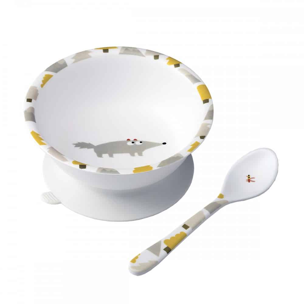 Graças à sua ventosa, a tigela não se move mais e permite que o bebê aprenda a comer sozinho sem derramar o conteúdo da tigela! A colher é toda redonda, segura para os pequenos com gestos imprecisos.