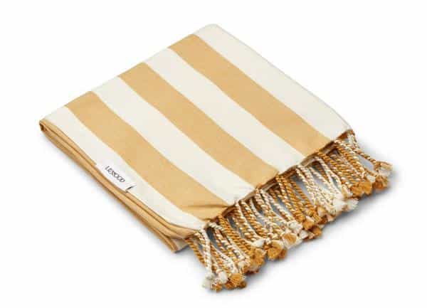 Uma toalha leve e macia perfeita para os dias de praia e piscina.Com riscas, 100% de algodão orgânico.