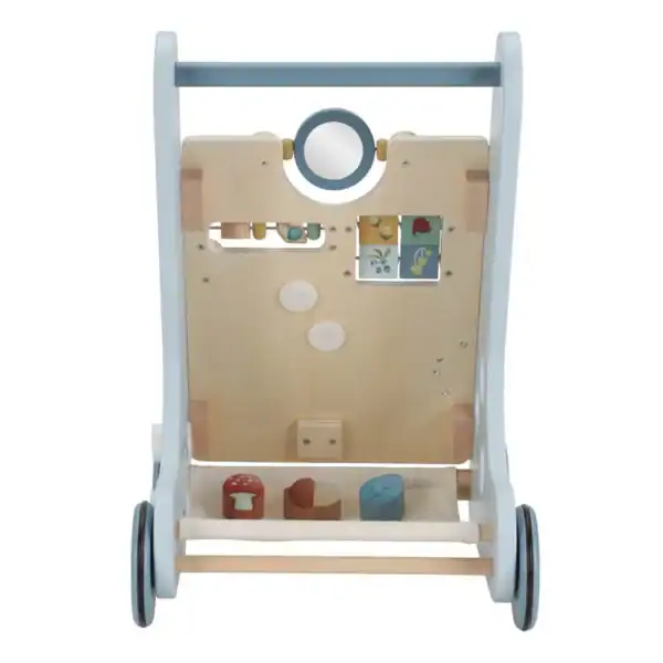 Este Walker de madeira oferece diversas atividades desafiadoras que auxiliam no desenvolvimento da coordenação motora das crianças. São 8 atividades para descobrir e dominar. Graças ao seu design equilibrado, o andador é uma ótima ajuda para crianças a partir de 12 meses que estão prontas para dar os primeiros passos. Prepare-se para muitos aplausos quando seu pequeno se aventurar pela casa. As rodas de borracha evitam arranhões no piso.